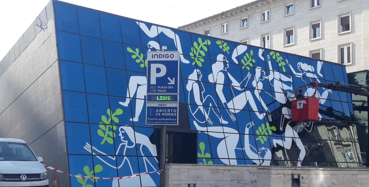 Rotulación con vinilo de corte sobre cristalera creando un mural de gran tamaño.